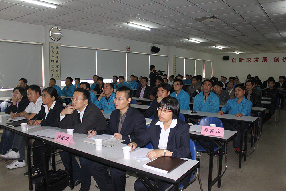 會議共分為現場案例展示、改善效果分析、評委現場提問等三大環(huán)節(jié),選手們將車間改善事例用PPT的形式展現出來,圖文并茂的為現場觀眾進行講解,并對車間改善效果進行詳細的闡述,與在場的班組代表們形成互動式交流。隨后評委對于改善效果進行現場評分,經過一番激烈的角逐,來自全鋼C區(qū)的王明波以《改進升降平移式硫化機開模過程》的案例獲得了此次例會的特等獎,并以總分37.2的高分位列第一。來自小胎廠的黃海峰以及全鋼B區(qū)車間的朱恒海分獲第二、第三名。通用公司副總經理顧亞紅對于此次例會給予了高度的肯定,并對改善案例中涌現的優(yōu)秀員工給予了一定的獎勵,感謝他們?yōu)檐囬g生產所作出的貢獻,并希望各廠區(qū)在今后的工作中能保持這種勇于創(chuàng)新、勇于改進的意識,認真的完成每一項生產任務,為通用的騰飛再點輝煌。